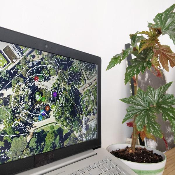 Kleos explora los jardines como espacios de coexistencia, vinculando especies botánicas con fragmentos científicos, artísticos y sonoros, que se activan y combinan en función de la cercanía de los usuarios en el espacio a través de una app.
